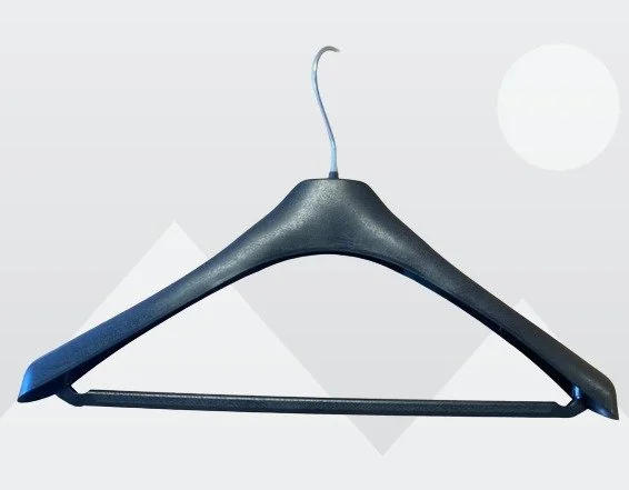 Black plastic hangers for men's suits. They are strong and ideal for stores or homes.